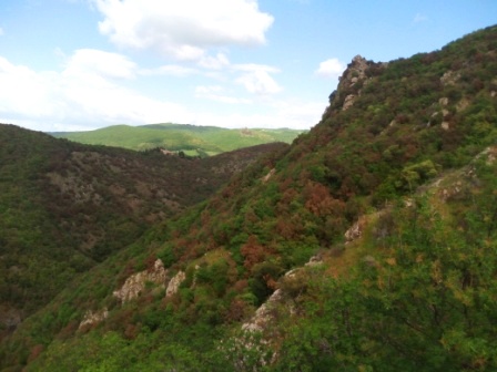 The path that enters the gorge leads to a suggestive waterfall of about 30 m, known as the “Acqua cascata”. Isolated cliffs, eroding detrital slopes and vertical walls create the setting for some suggestive little waterfalls and for a peculiar gorge environment where numerous species of serpentine plants, i.e. plants that have adapted or evolved in these particular soil conditions, find their ideal habitat. On the hydrographic right of the Strolla stream, the relief of Poggio Casalone differs from the surrounding area due to its calcareous nature, forming a small plateau where the striking rocky outcrops represented an imposing natural defence for the medieval castle of the Nera.