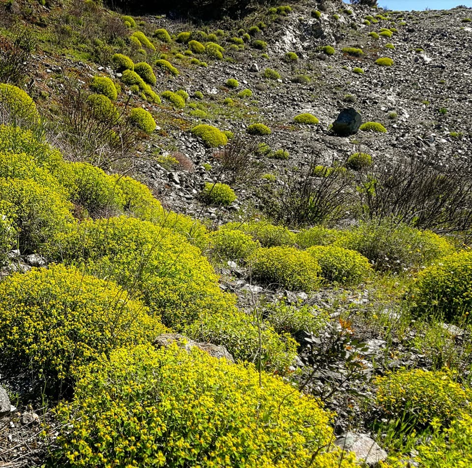 The soils resulting from the alteration of ophiolite rocks are very inhospitable to plant life due to the lack of nutrients, the presence of toxic heavy metals and high soil temperatures. These conditions have caused the selection of numerous ecological endemisms and have influenced the shape of the plants, most of which are characterised by dwarfism, increased root development, ground-hugging shape with creeping stems, increased hair density, thickening and reduction in leaf size. Real natural bonsai trees of various Mediterranean species fascinate the hiker.