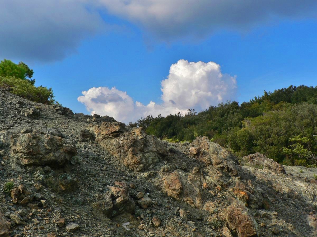Ophiolites (from the Greek òphis = snake and lithos = stone) are made up of magmatic rocks, gabbroes and basalts, and metamorphic rocks, serpentinites. They represent an ancient ocean floor, dating back some 180 million years, which was subsequently compressed and raised above sea level following massive movements of the earth’s crust. This origin is confirmed by the constant association of these rocks with deep-sea sediments, such as jaspers or argillites, with Palombini shales, the latter of which can be observed at the Aia al Cerro.